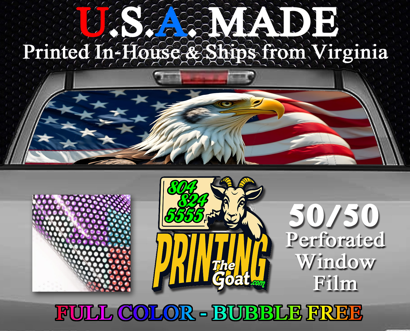 American Flag Bald Eagle and Cross Rear Truck Window 50/50 Perforated Sticker