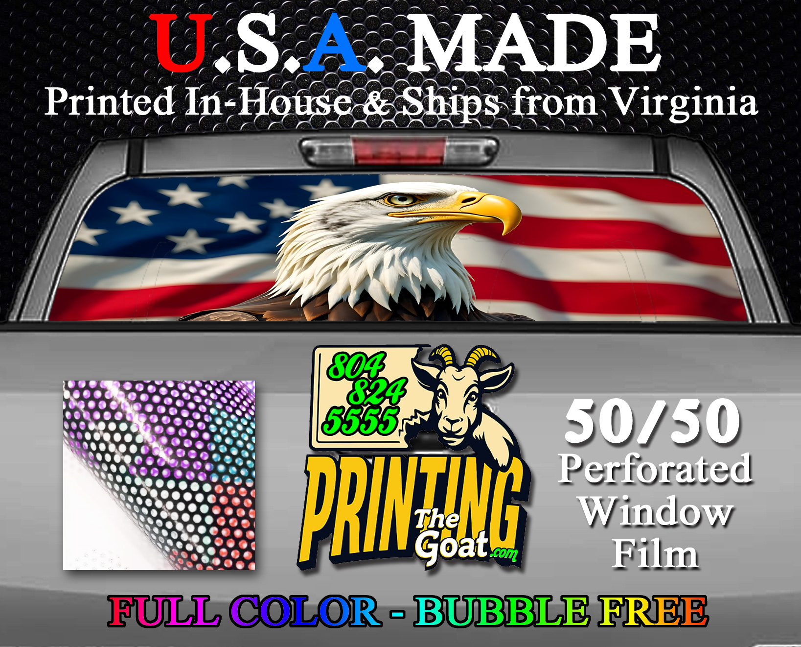 American Flag Bald Eagle and Cross Rear Truck Window 50/50 Perforated Sticker
